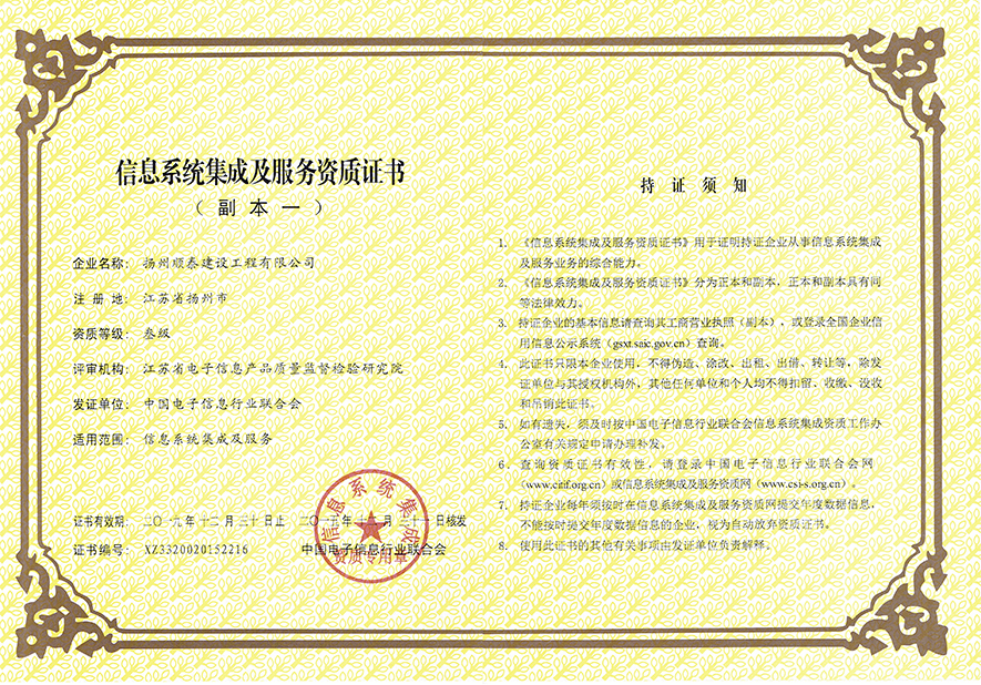 系統(tǒng)集成資質(zhì)證書-順泰交通
